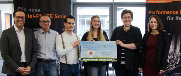 Heidolph Instruments管理层将抽奖活动的结果增加了两倍。 因此,发起人能够将自豪的1,500欧元交给Nadine Guggenberger和Traumzeit e.V. 2017年3月。